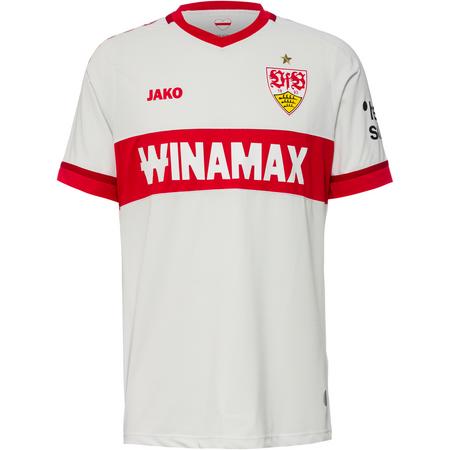 Teamtrikot des VfB Stuttgart; V-Ausschnitt; die Halbraglanärmel sorgen für optimale Bewegungsfreiheit; Marken-, Sponsoren- und Vereinsdetails auf der Front; Material 100% Polyester (recycelt). ...